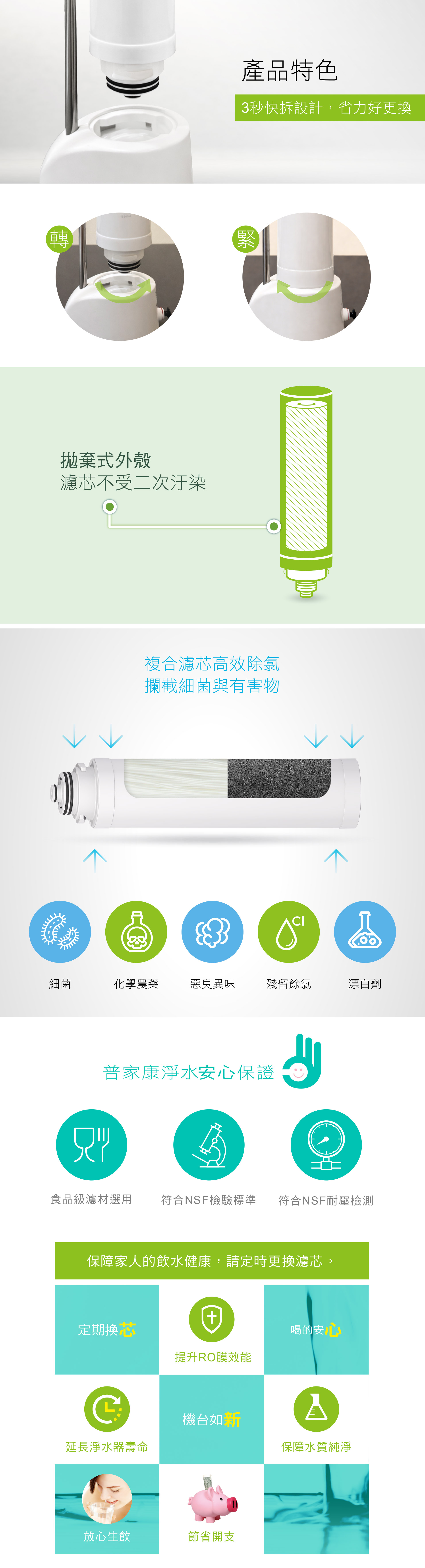 採用通過NSF認證濾材
